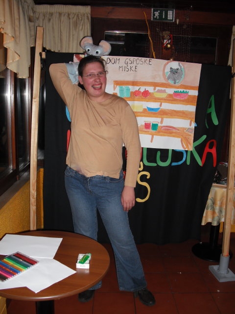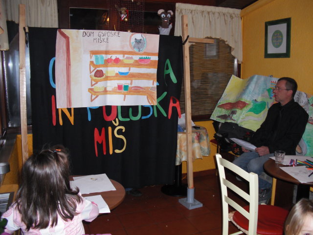 Tisti četrtek so KD PoBeRe in njihovi mladi gostje in njihovi starši predprostor bara Pri Gotarju začarali v pravljično pokrajino, kjer so se po shrambi podile miši, mačke in jezna gospodinja, kjer je lahko vsak po mili volji risal, kadarkoli in kar je želel, kjer nam je prijazna gostiteljica Olga ponudila bonbone, potico in sok in kjer smo na koncu s pomočjo lutk spoznali: »Bolje se je otepati z revščino in živeti varno, kot pa imeti vsega v izobilju in biti v večnem smrtnem strahu!«